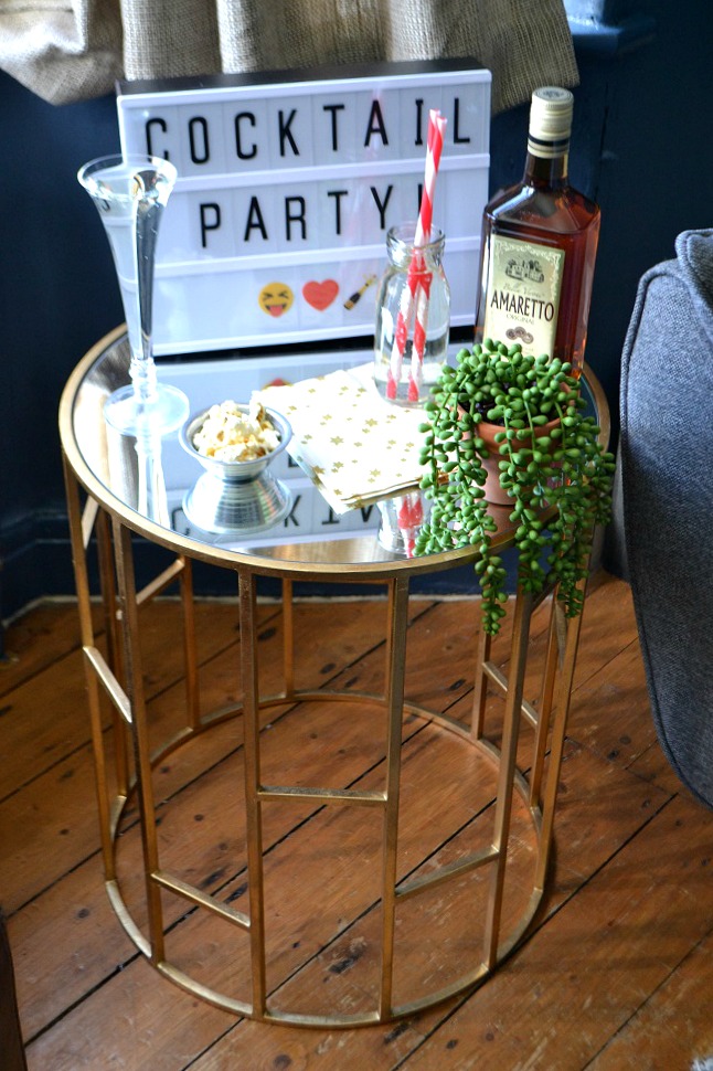 If you’re entertaining guests, a side table can become a perfect little drinks station for snacks and fizz. The next best thing to a vintage gold bar cart!