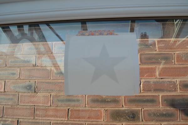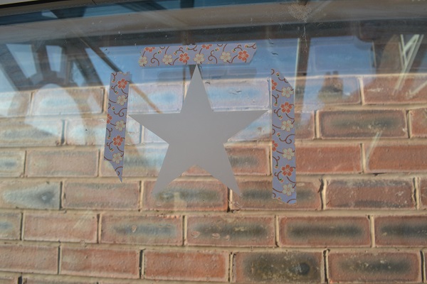 I worked out the position the star should be on the window, using a ruler, and stuck the tape at the points where the star should go between.