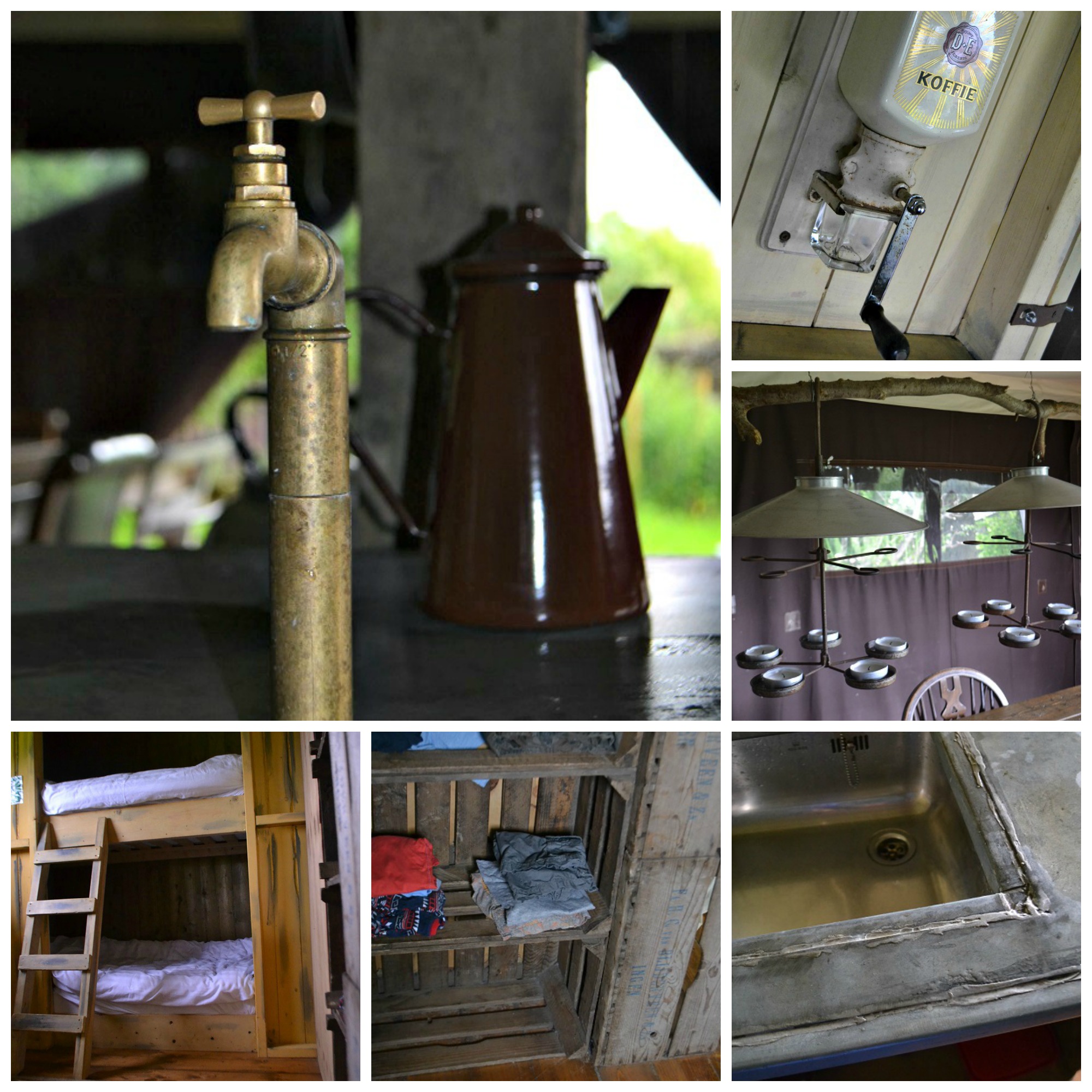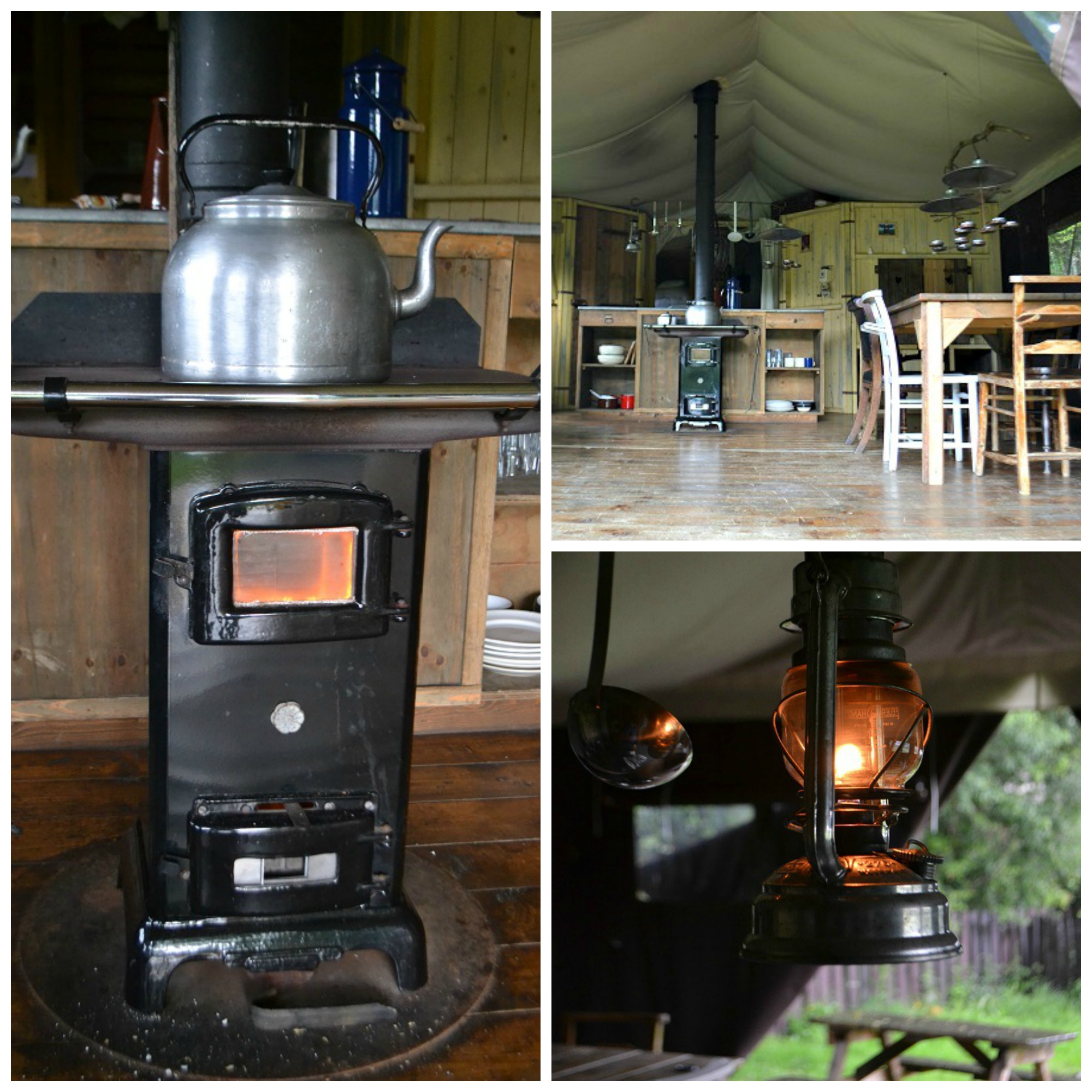 Our youngest two boys had been counting down the sleeps from about 20, so they were beyond excited when the actual day arrived. We picked up our eldest son, Alex from high school as soon as he finished on the Friday afternoon and headed straight off. On arrival we were met by Elin and Owen and their youngest son (like us, they have 3 boys). We were shown around the picturesque site and Owen ran through everything we needed to know, including how to get the log burning stove going. There is running cold water but no electricity in the tents, so the stove is important for hot water, cooking and warmth. I adored that big tin kettle! At night, light is provided by the gorgeous lanterns and tealight holders that are dotted around the tent.