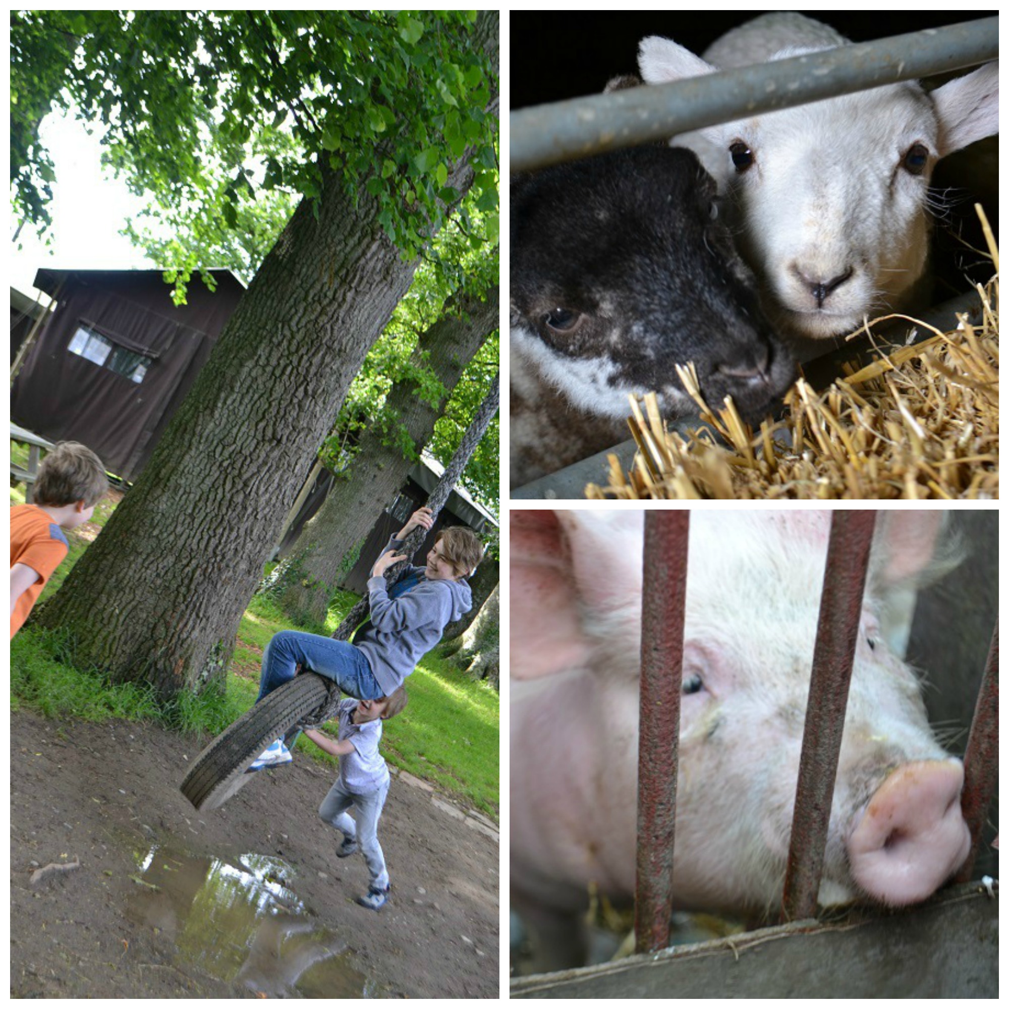 While we unpacked, the boys played on the tyre swing and had a good explore. Chickens were roaming free and they discovered two pigs in a sty and a couple of adorable lambs that they totally fell for and wanted to bring home with us by the end of the weekend. Can’t really blame them…