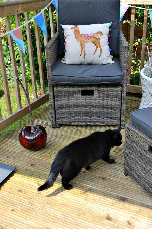 How amazing the weather has been this past few days! With the kids off for half term, we’ve certainly been making the most of the outdoors and it has been so great. In particular we’ve enjoyed spending time on our wooden deck area in the garden – even more so since the arrival of this cute medium Cherry outdoor ornament, sent to us by New Garden Style.